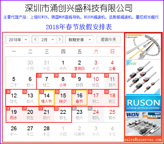 放假期間,為了方便您在節(jié)日期間獲得我們的客戶服務(wù),您可以通過(guò)電子郵箱:sales@szservos.com與相關(guān)服務(wù)人員取得聯(lián)系。