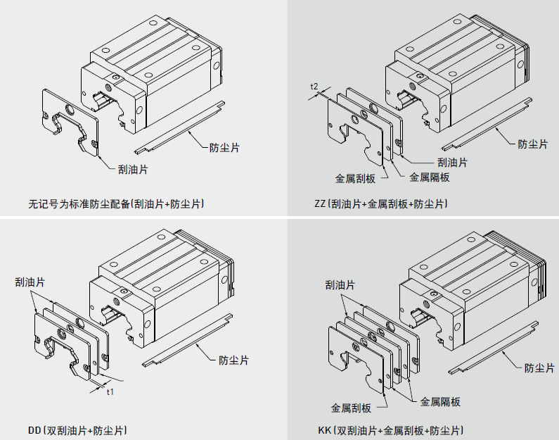 阻止加工鐵屑或塵粒進(jìn)入滑塊里面,破壞珠道表面而降低直線導(dǎo)軌壽命。