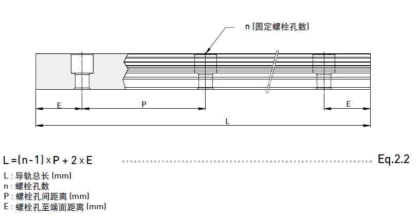 HIWIN 備有導(dǎo)軌標(biāo)準(zhǔn)長(zhǎng)度庫(kù)存供應(yīng)客戶需求。若客戶訂購(gòu)非標(biāo)準(zhǔn)長(zhǎng)度導(dǎo)軌時(shí),端面距離E的尺寸最好不要大于1/2P,防止因E的尺寸過(guò)大導(dǎo)致導(dǎo)軌裝配后端部的不穩(wěn)定,而降低直線導(dǎo)軌的精度。