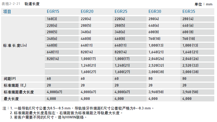 2. 標(biāo)準(zhǔn)端距最大長(zhǎng)度是指左、右端距皆為標(biāo)準(zhǔn)端距之導(dǎo)軌最大長(zhǎng)度。