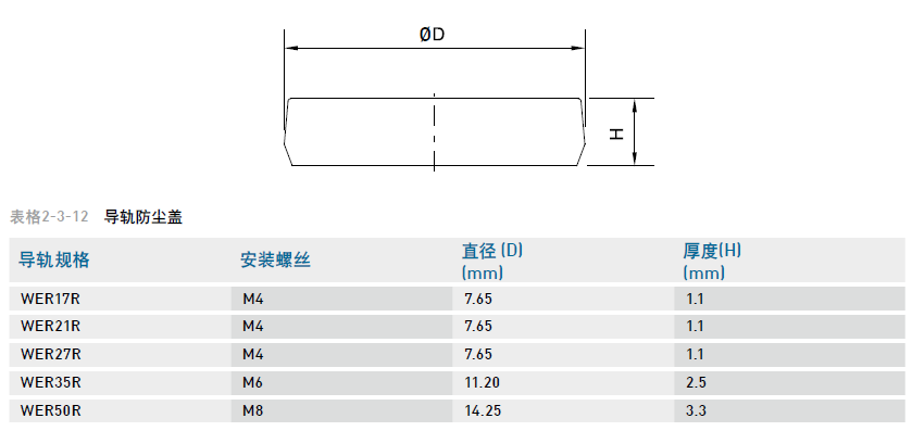 導(dǎo)軌螺栓蓋,為防止切削粉末或異物經(jīng)由螺栓孔侵入滑塊內(nèi)部影響精度,客戶必須在安裝導(dǎo)軌時(shí)將螺栓蓋打入螺栓孔內(nèi),每支導(dǎo)軌出廠時(shí)皆配有螺栓蓋。