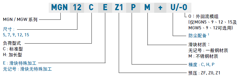 (2) 互換性直線導(dǎo)軌產(chǎn)品型號(hào)
