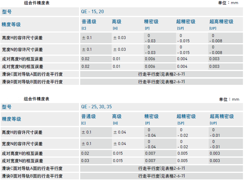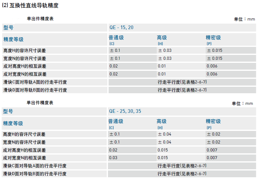 直線導軌精度等級對照表